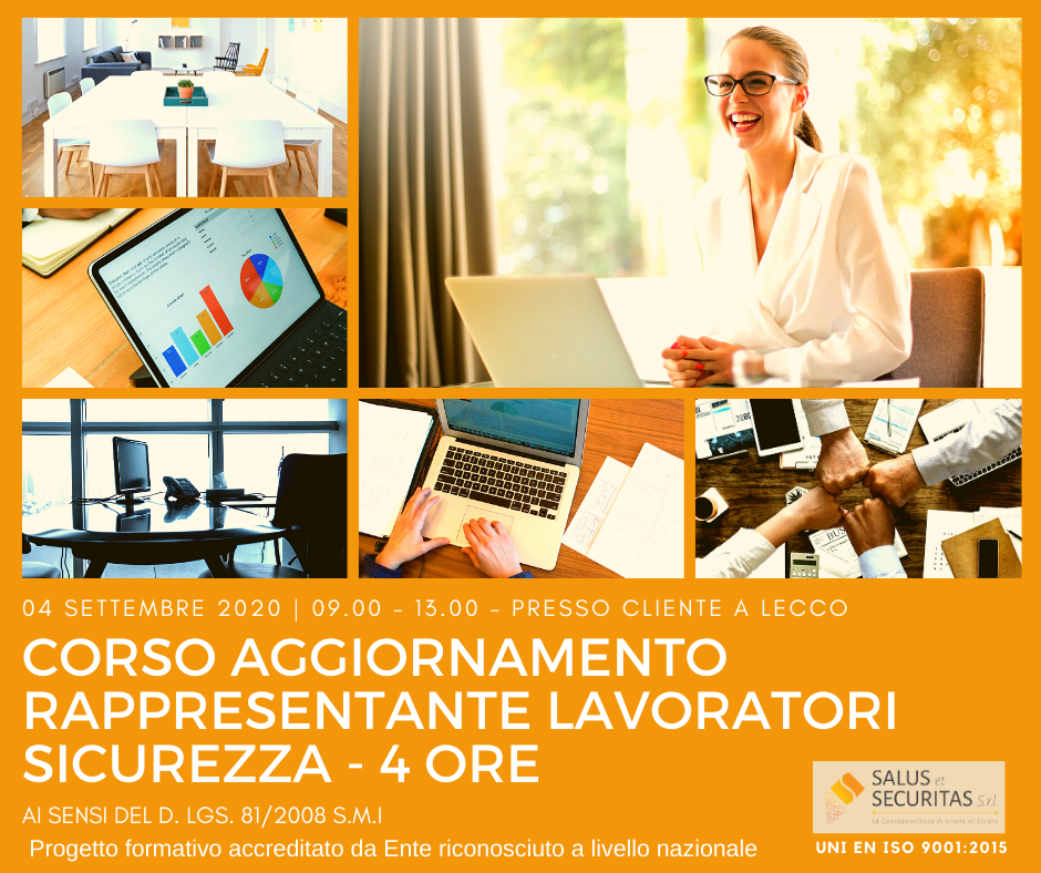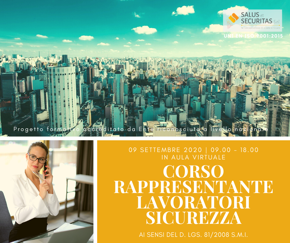 Corso Rappresentante Lavoratori Sicurezza – RLS – dalla durata di 32 ore, ai sensi del D. Lgs. 81/2008 s.m.i., in aula virtuale il giorno 09 Settembre 2020.