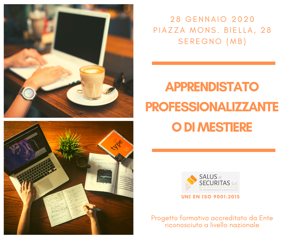 Corso Formazione Apprendistato Professionalizzante o di Mestiere, presso la Sede Operativa e Centro Formativo di Seregno (MB), Piazza Monsignor Biella n°28 il giorno 28 Gennaio 2020.
