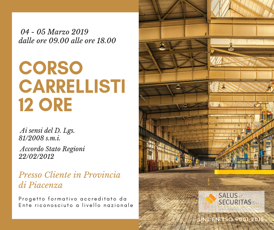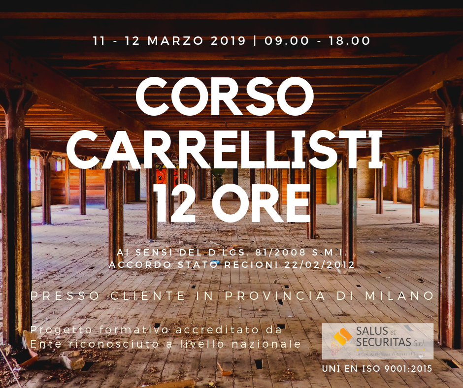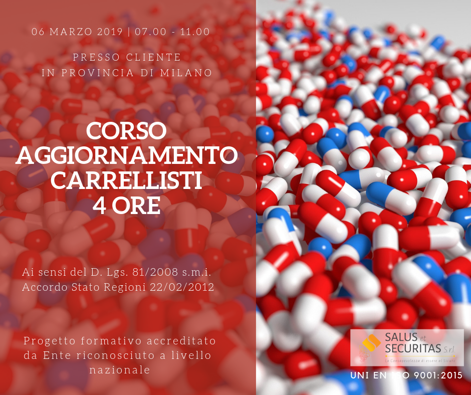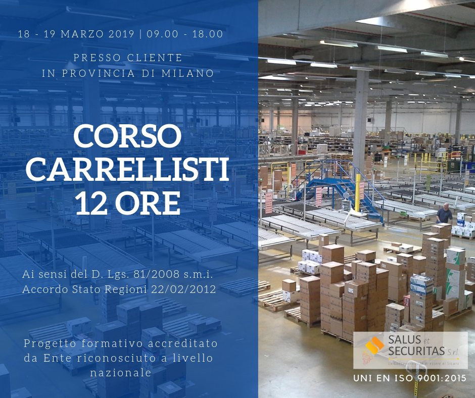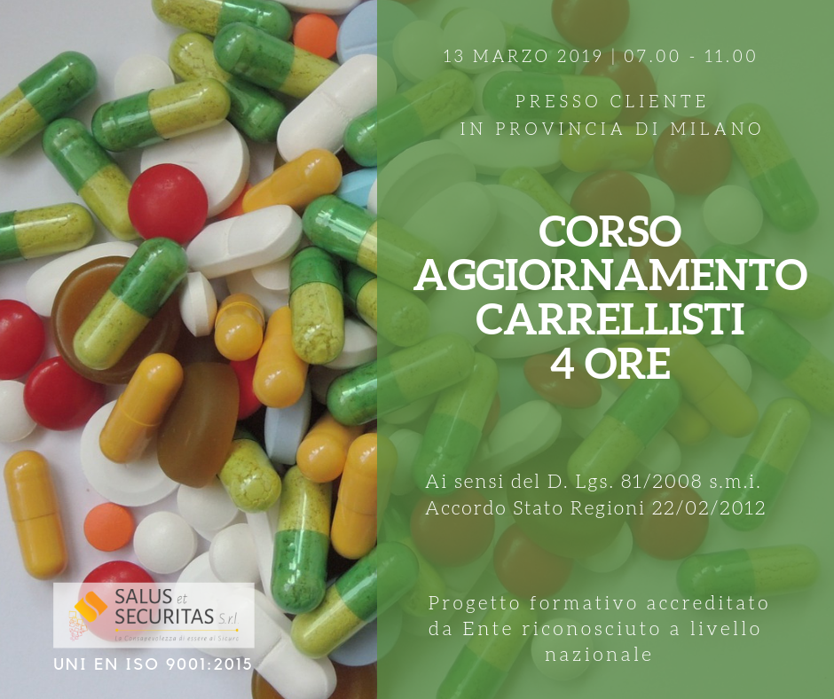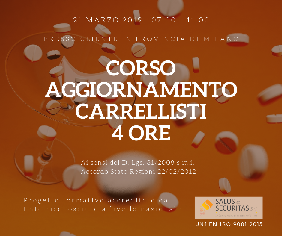 Corso Aggiornamento Carrellisti Uomo a Bordo dalla durata di 4 ore, ai sensi del D. Lgs. 81/2008 s.m.i. e dell’Accordo Stato Regioni del 22/02/2012, presso Cliente in provincia di Milano il giorno 21 Marzo 2019.