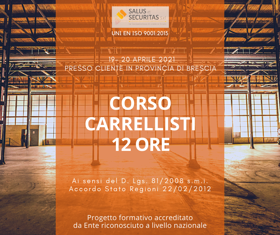 Corso Carrellisti Uomo a Bordo dalla durata di 12 ore, ai sensi del D. Lgs. 81/2008 s.m.i. e dell’Accordo Stato Regioni del 22/02/2012, presso Cliente in provincia di Bergamo il giorno 15 Maggio 2021.
