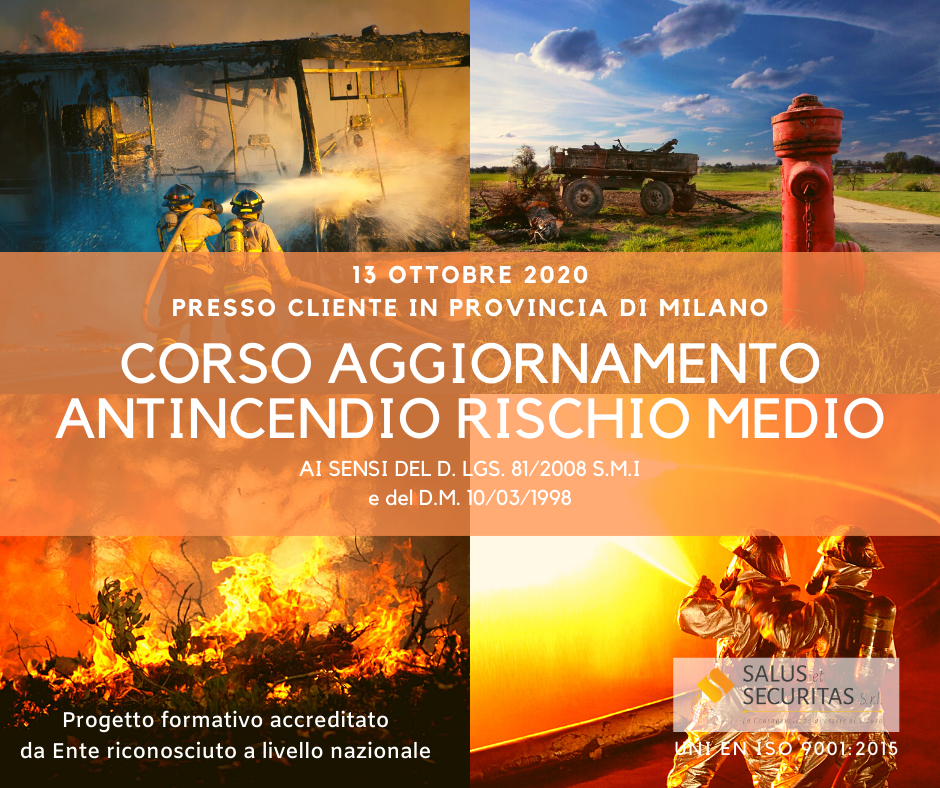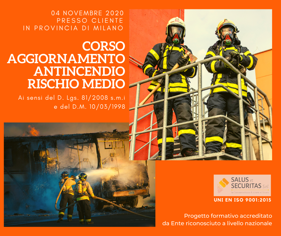 Corso Aggiornamento Antincendio Rischio Medio della durata di 5 ore ai sensi del D. Lgs. 81/2008 s.m.i., presso Cliente in provincia di Monza e Brianza il giorno 30 Dicembre 2020.