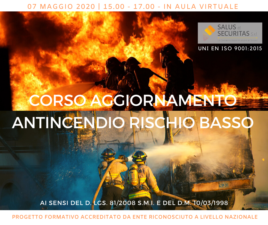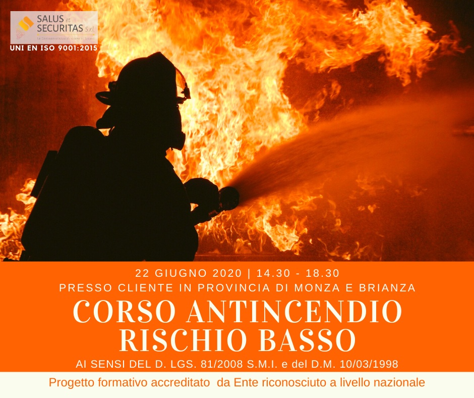 Corso Antincendio Rischio Basso della durata di 4 ore ai sensi del D. Lgs. 81/2008 s.m.i., presso Cliente in provincia di Monza e Brianza il giorno 22 Giugno 2020.