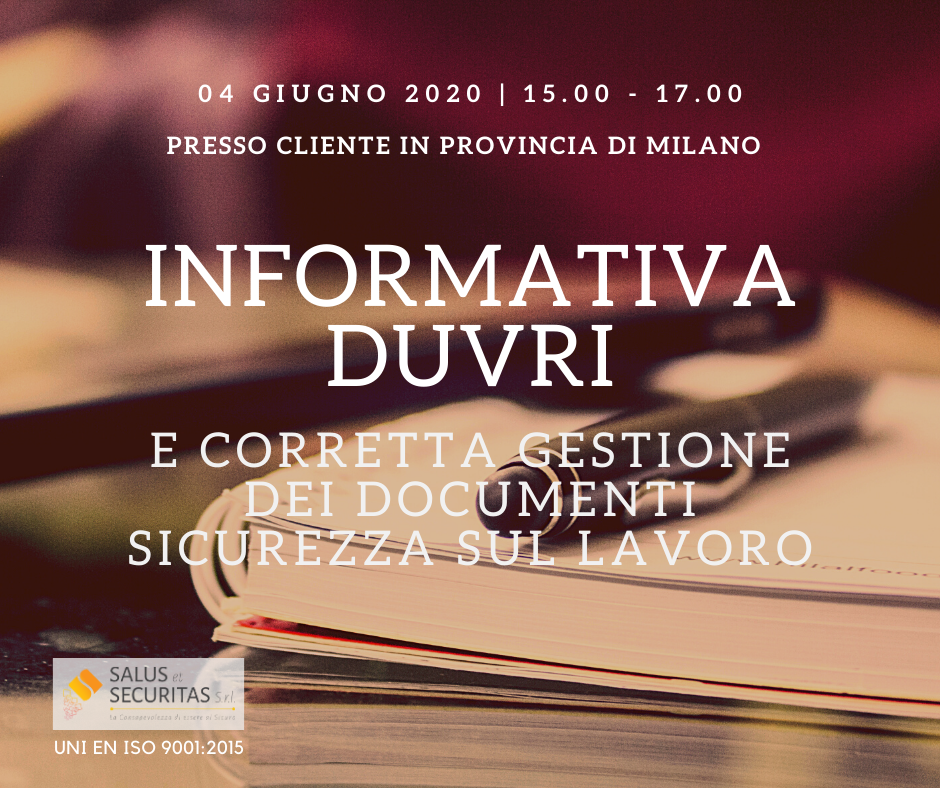 Informativa DUVRI e la corretta gestione dei Documenti Sicurezza sul Lavoro, presso Cliente in provincia di Milano il giorno 04 Giugno 2020.